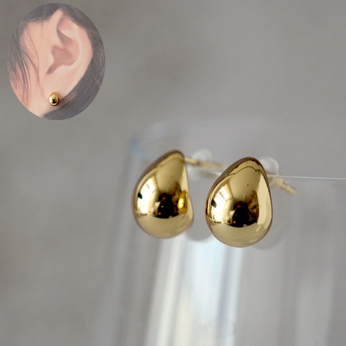 金属アレルギー対応 【193. ぷちっとドロップ スタッドピアス 1ペア】 ステンレス ピアス ポスト ゴールド シンプル 【メール便送料無料】