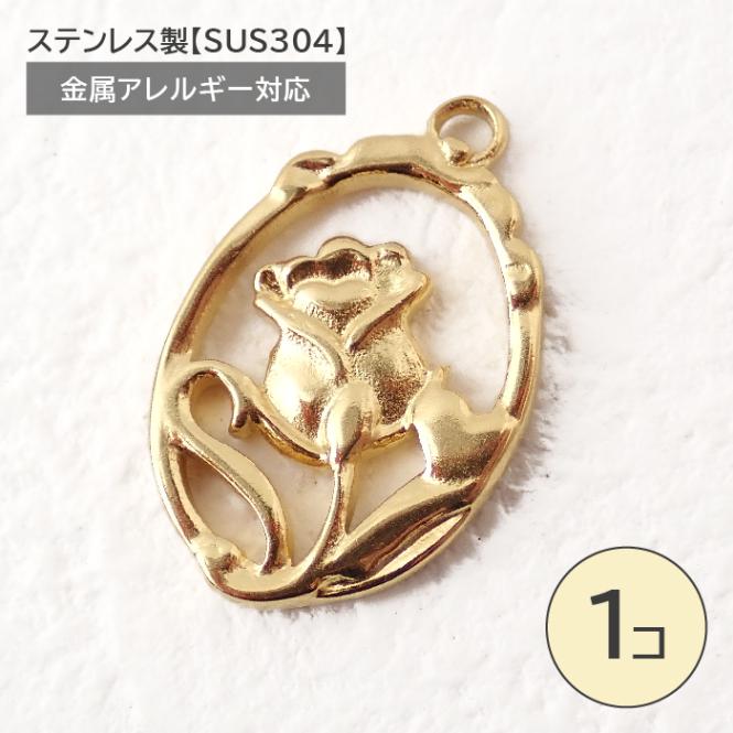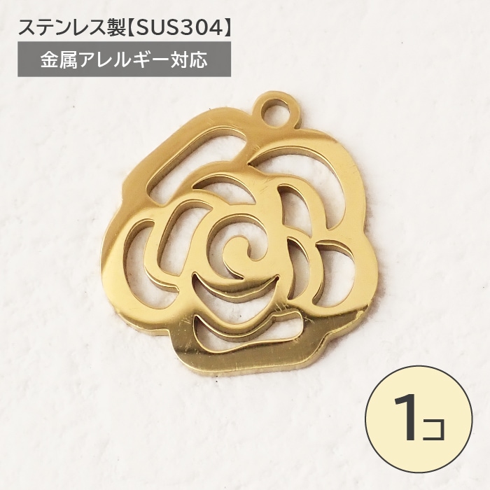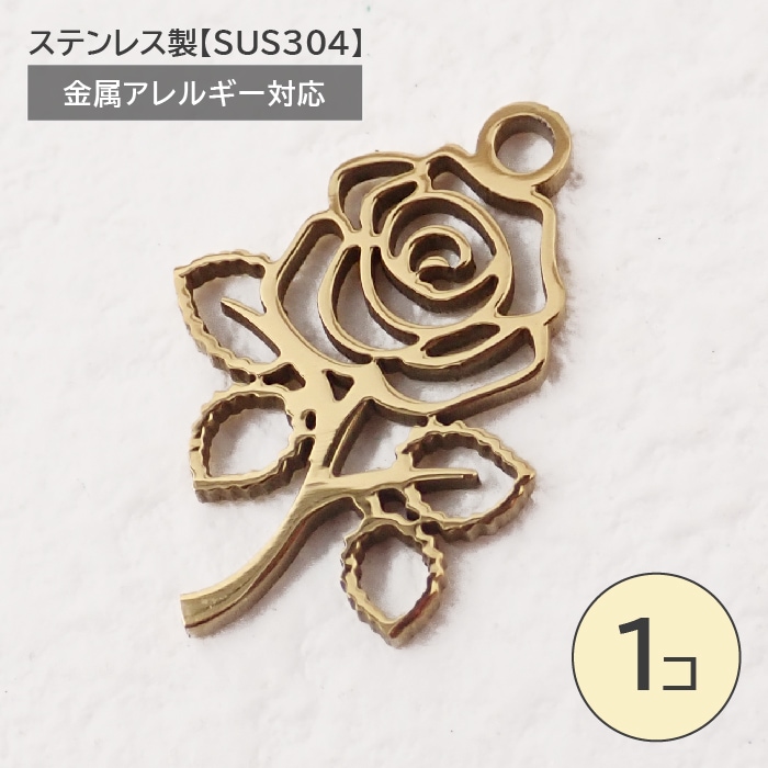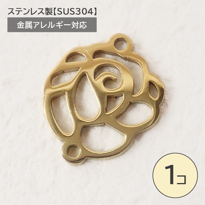 ステンレス製【SUS304】 金属アレルギー対応 バラ コネクタパーツ チャーム