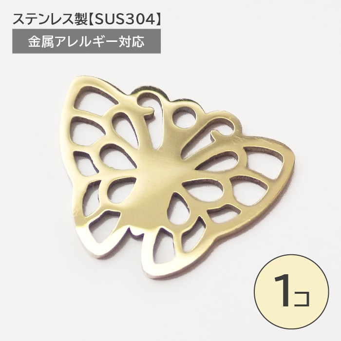 ステンレス製【SUS304】 金属アレルギー対応 蝶々 チャーム カン付き