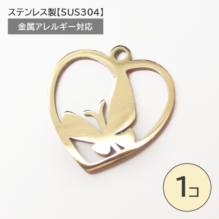 ステンレス製【SUS304】 金属アレルギー対応 ハート 蝶 チャーム カン付き