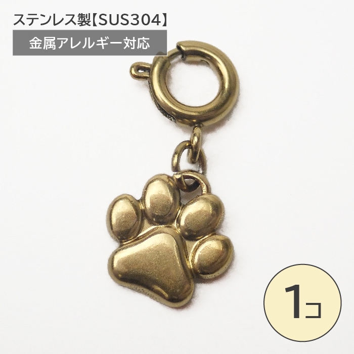 ステンレス製【SUS304】 金属アレルギー対応 肉球 チャーム 引き輪付き