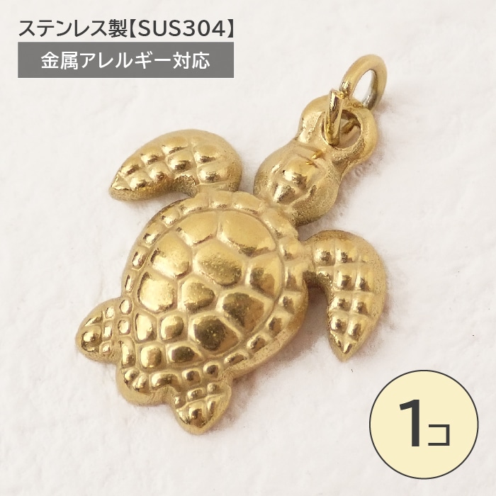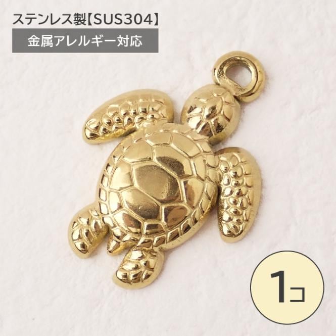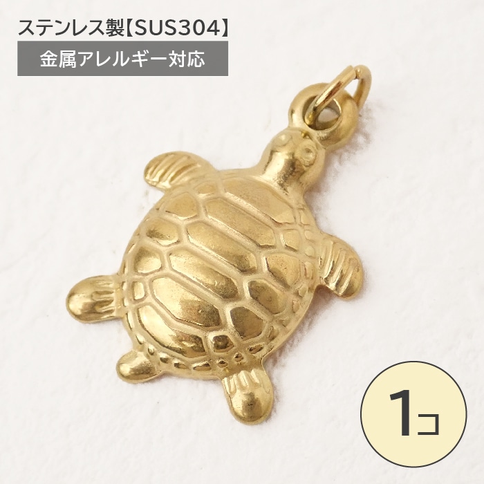 ステンレス製【SUS304】 金属アレルギー対応 カメ チャーム カン付き