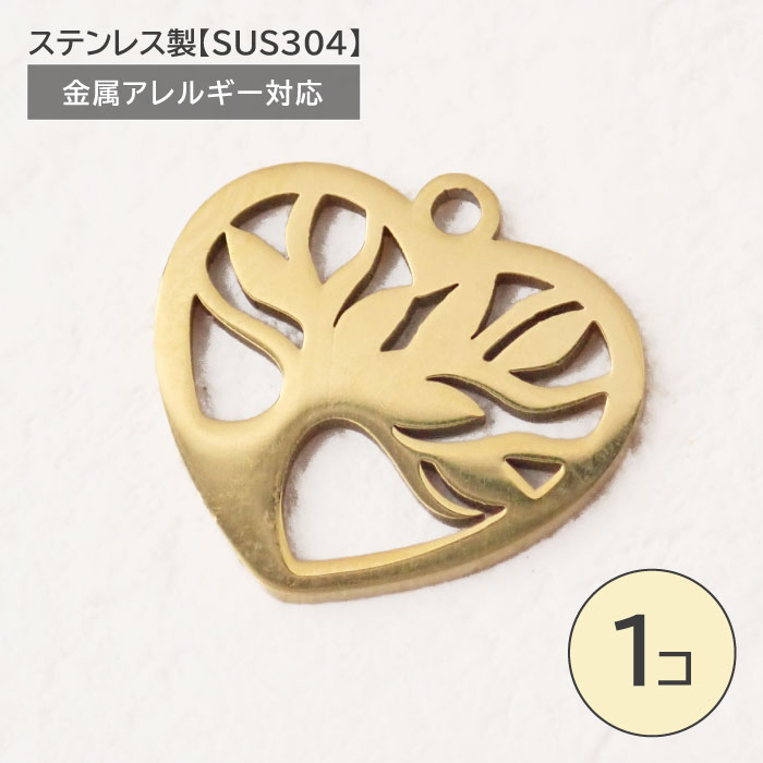 ステンレス製【SUS304】 金属アレルギー対応 ハート ツリー チャーム カン付き