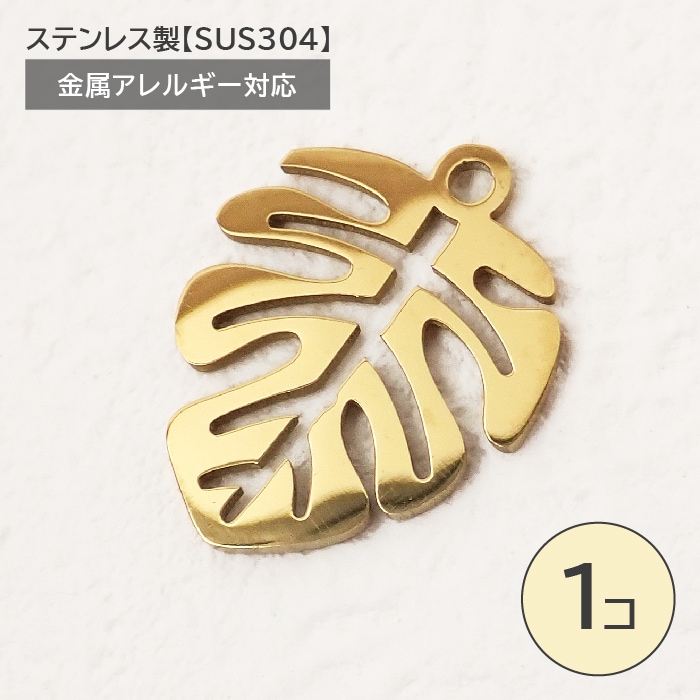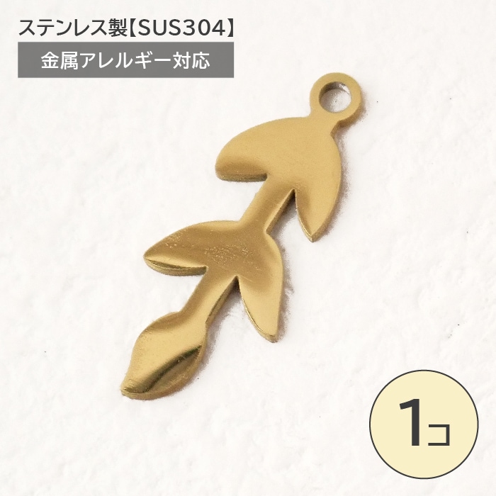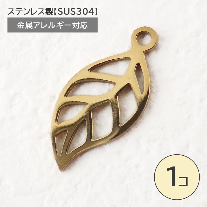 ステンレス製【SUS304】 金属アレルギー対応 葉 チャーム カン付き