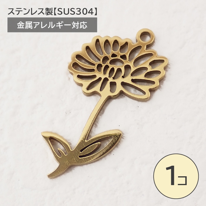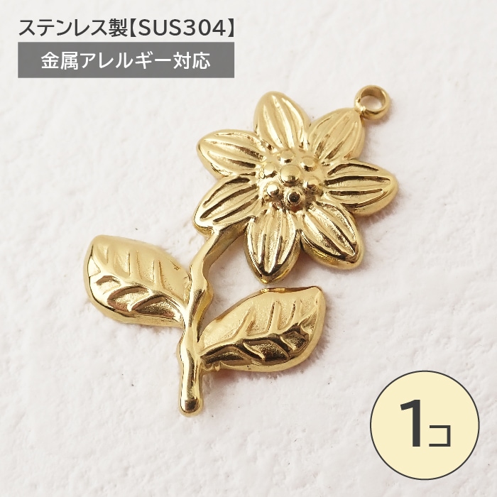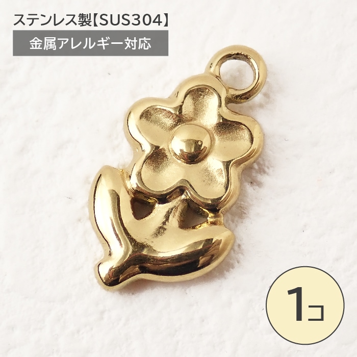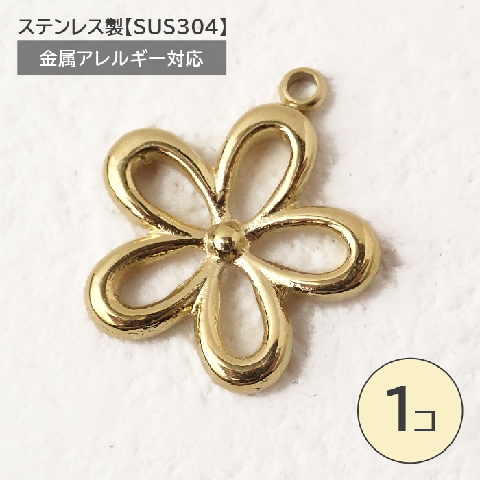 ステンレス製【SUS304】 金属アレルギー対応 花 チャーム 引き輪付き