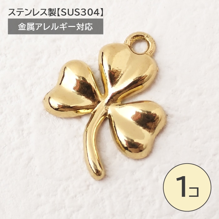 ステンレス製【SUS304】 金属アレルギー対応 クローバー チャーム カン付き