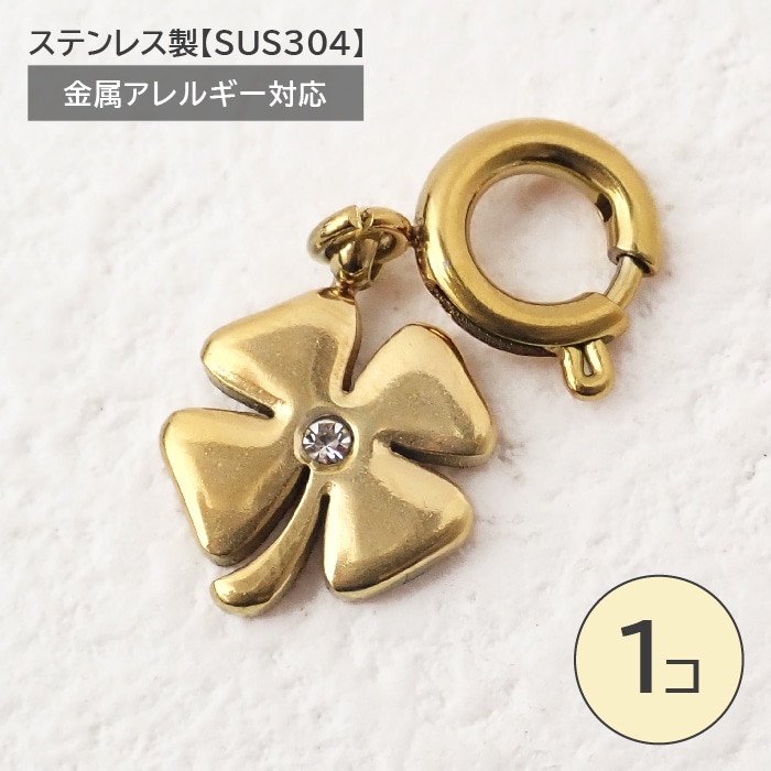 ステンレス製【SUS304】 金属アレルギー対応 クローバー チャーム 引き輪付き