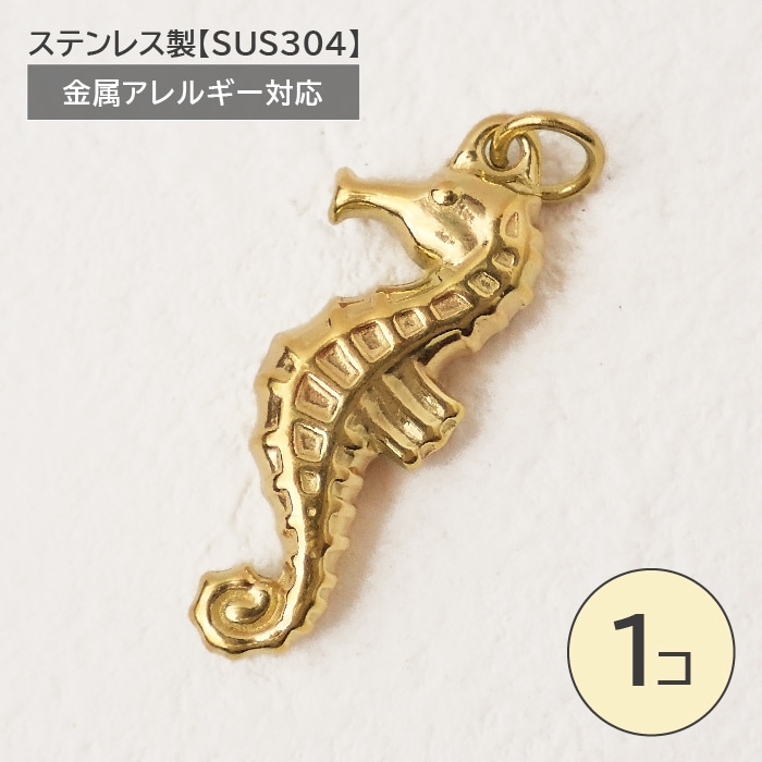 ステンレス製【SUS304】 金属アレルギー対応 タツノオトシゴ チャーム 丸カン付き