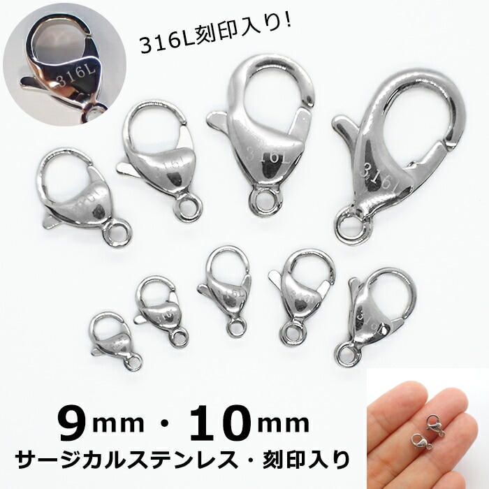 アレルギー対応 ステンレス 【316 刻印入り】 サージカルステンレス製 カニカン 9・10mm シルバー【1個】 アレルギーフリー 銀 留め金具 留め具 ハンドメイド 金具 DIY 国内発送