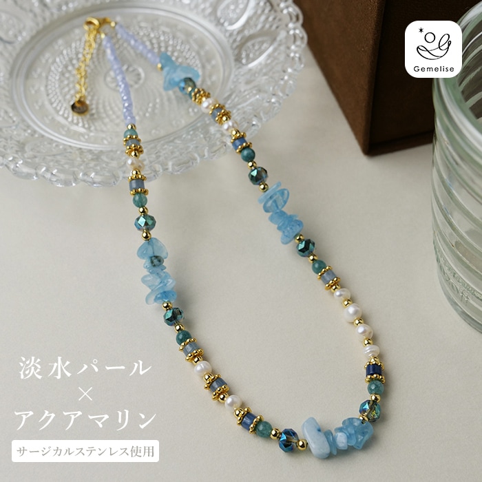 Gemelise ジェメリース 淡水パール×天然石(アクアマリンなど)ネックレス 950248