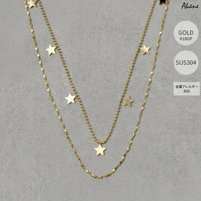 ステンレス304製 2連ネックレス 【星形】6mm 1本 ボールチェーン K18コーティング アレルギー対応