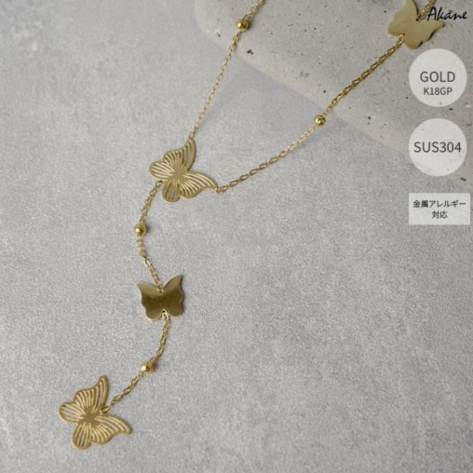 ステンレス304製 Y字ロング ネックレス 【蝶々】約8mmアズキ 1本 重ね付け アレルギー対応