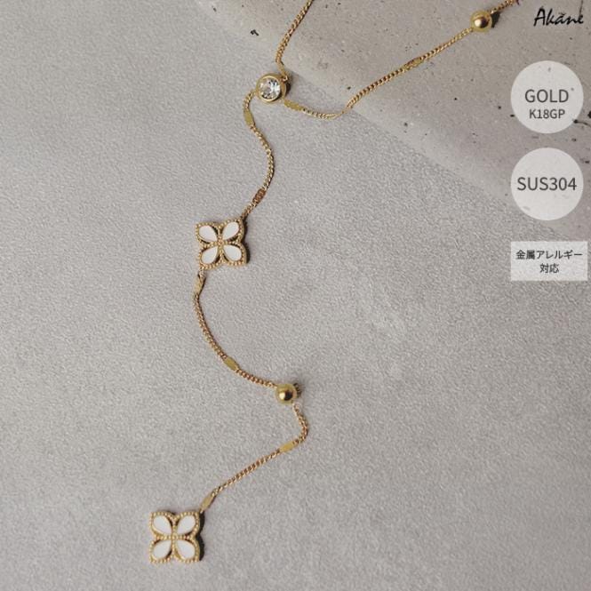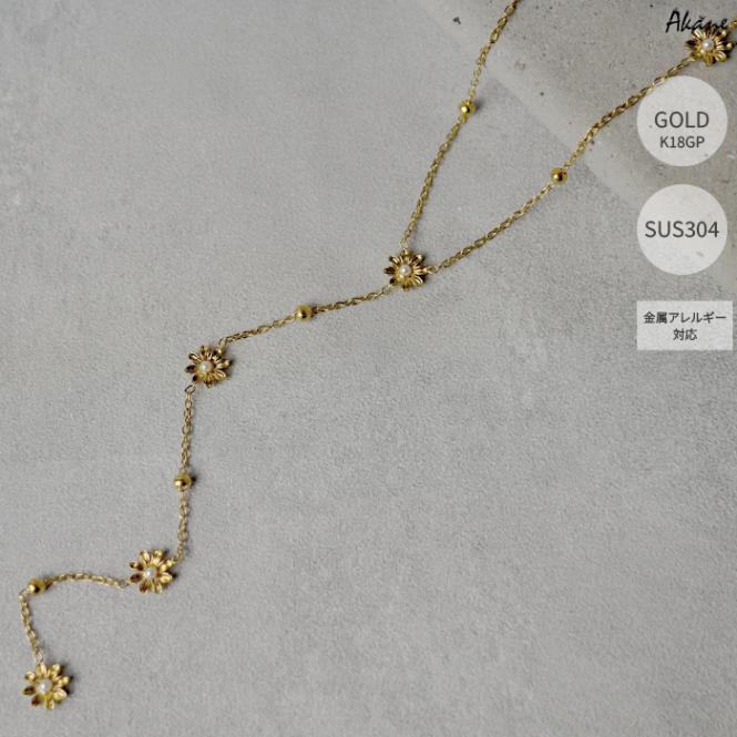 ステンレス304製 2連ネックレス 【Y字 花 パール 】1本 フラワー K18コーティング 重ね付け アレルギー対応