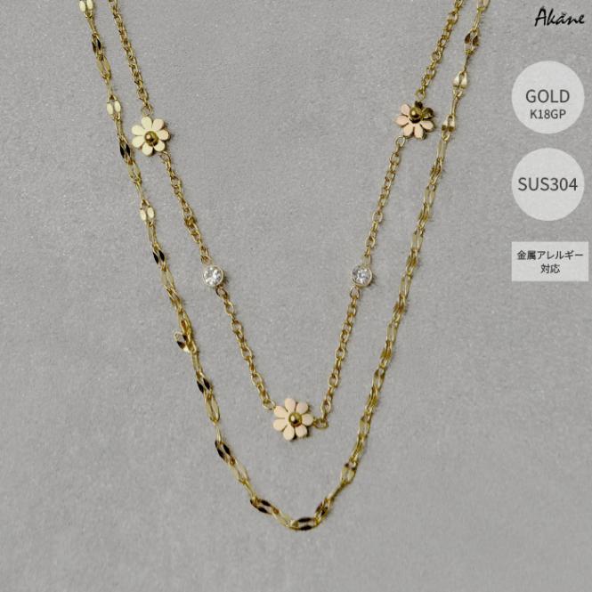 ステンレス304製 2連ネックレス 【花】5mm/7mm 1本 フラワー K18コーティング 重ね付け アレルギー対応