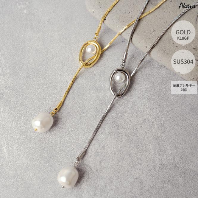ステンレス304製 Y字ロング ネックレス 【樹脂パール】スネーク 1本 重ね付け アレルギー対応