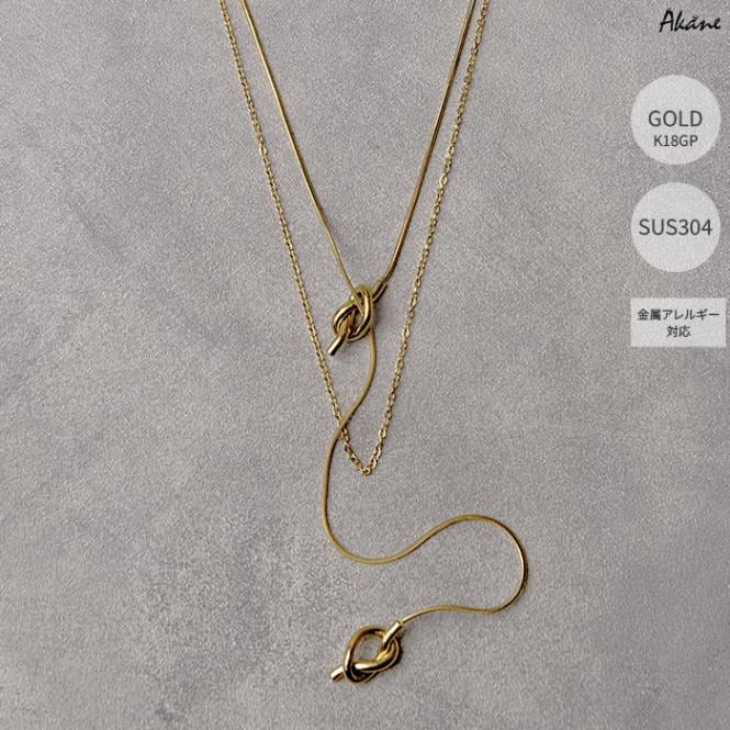 ステンレス304製 2連 ネックレス 【 結び ノット】約7×13mm スネークチェーン 1本 アレルギー対応