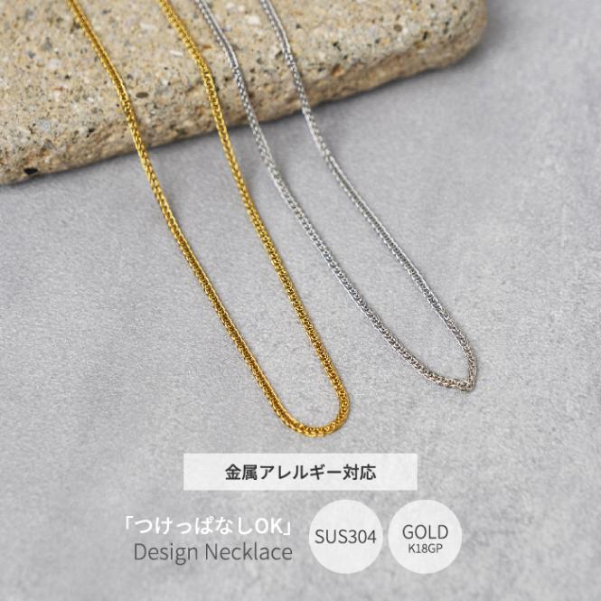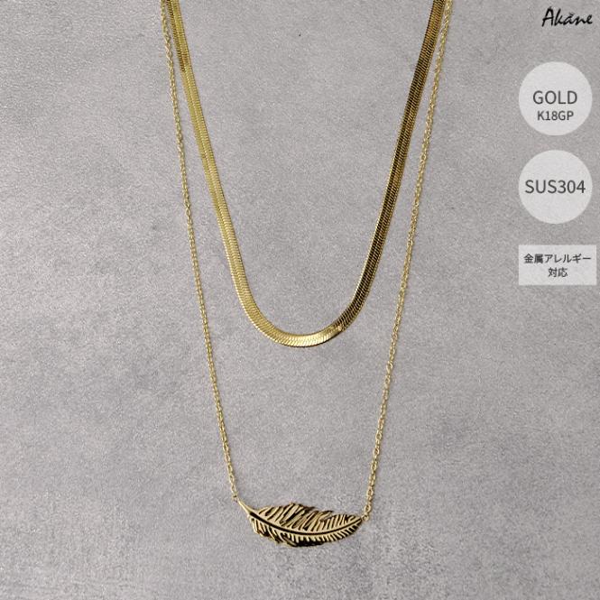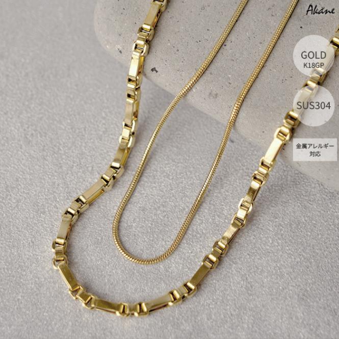 ステンレス304製 2連ネックレス 【スクエア+スネーク】1本 フラワー K18コーティング アレルギー対応