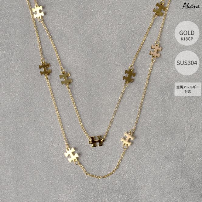 ステンレス304製 2連 ネックレス 【パズル】約6*7mm アズキチェーン 1本 アレルギー対応