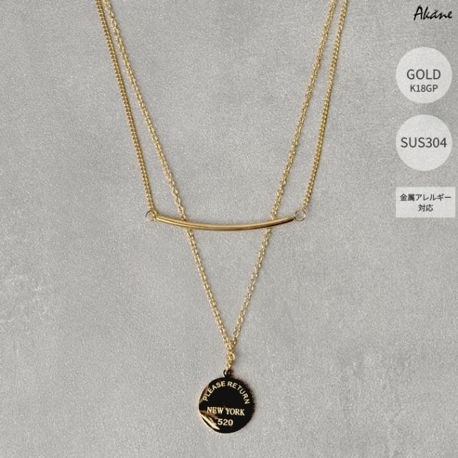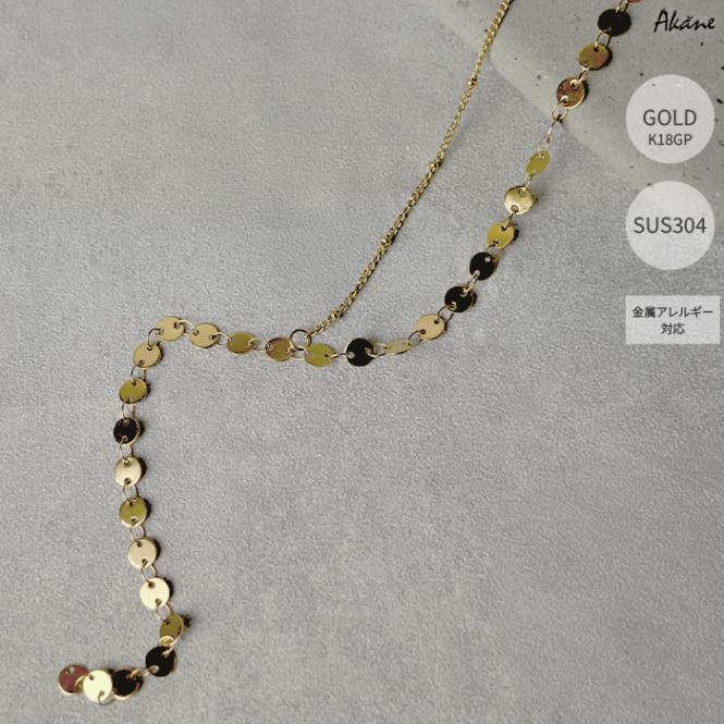 ステンレス304製 2連ネックレス 【コイン】約15mm アズキチェーン 1本 重ね付け アレルギー対応