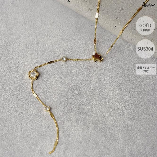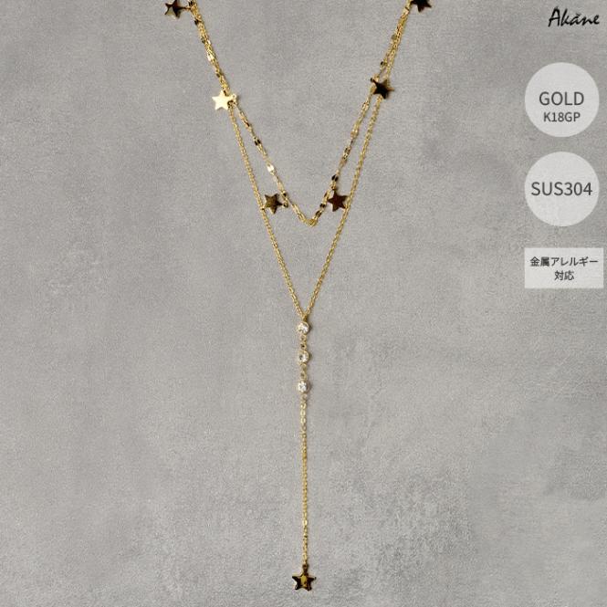 ステンレス304製 2連ネックレス 【星形】7mm 1本 Y字 ロング K18コーティング アズキ アレルギー対応
