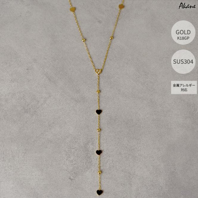 ステンレス304製 Y字ネックレス 【ハート】約5mmアズキチェーン 1本 ロング アレルギー対応
