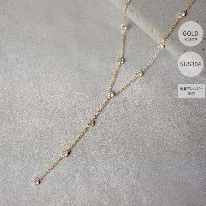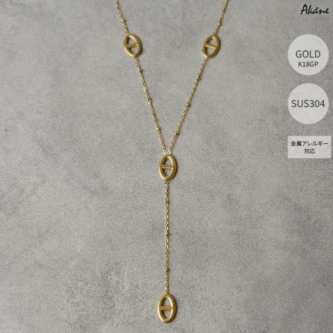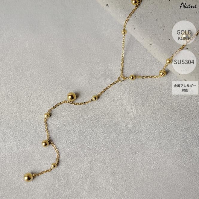 ステンレス304製 Y字ネックレス 【ボール】3-5mm 1本 ロング K18コーティング 重ね付け アレルギー対応