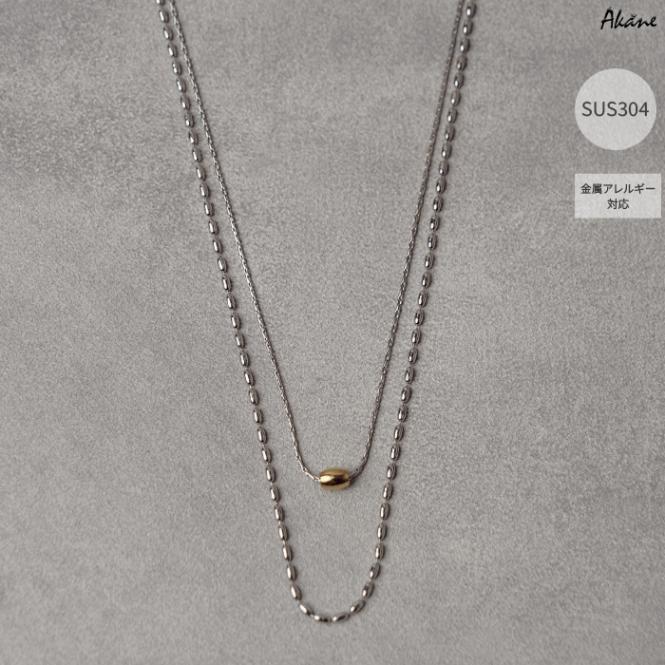 ステンレス304製 2連ネックレス 【ライス】約4*5.5mm アズキチェーン 1本 ロング アレルギー対応