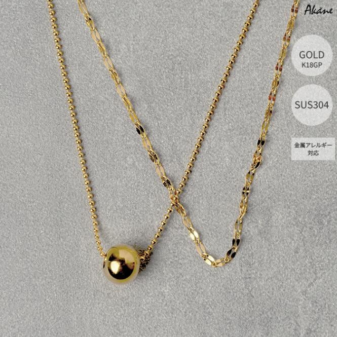 ステンレス304製 2連ネックレス 【ボール】約9mm ボールチェーン1本 重ね付け アレルギー対応