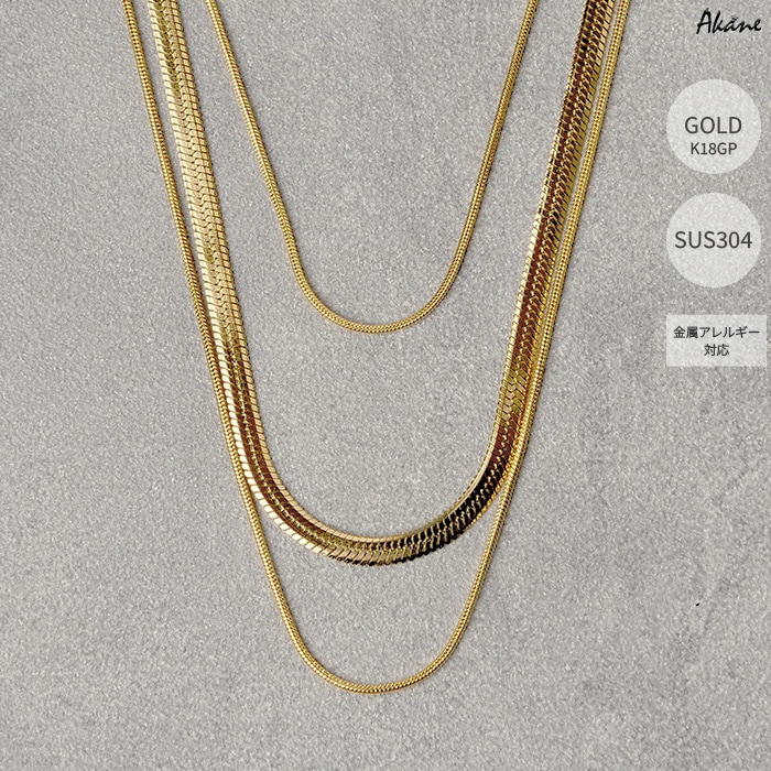 ステンレス304製 3連ネックレス 【3連】三連デザイン スネーク1本 重ね付け アレルギー対応