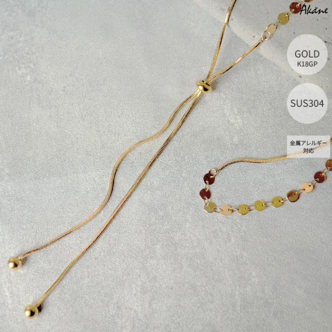 【ステンレス製】チェーン ネックレス シンプル ゴールド スライドボール レディース サイズ調整【a-n139】