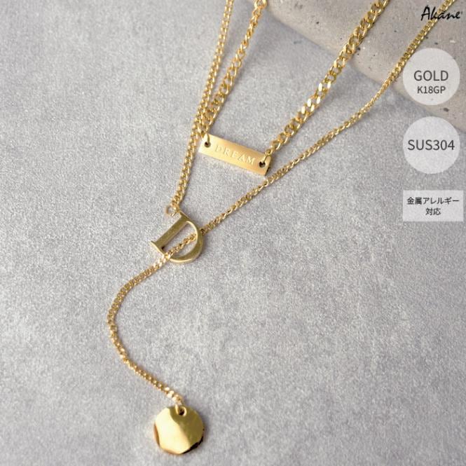 ステンレス304製 2連ネックレス 【プレート】5mm 1本Y字ロング アズキ 重ね付け アレルギー対応