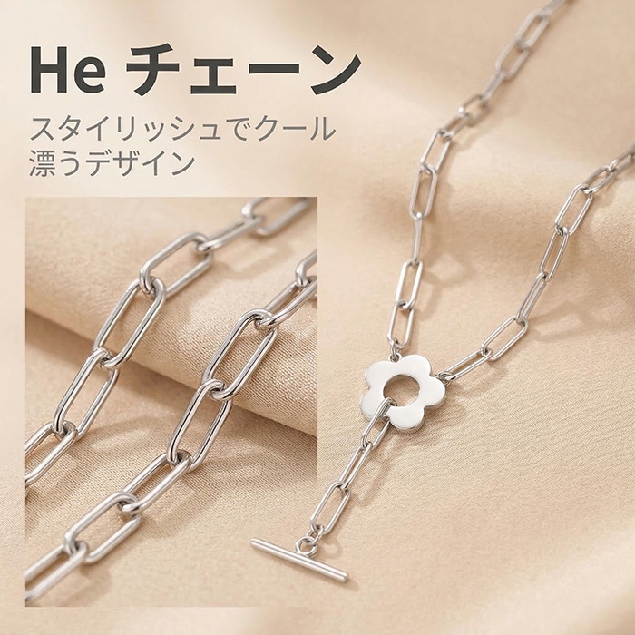 ステンレス ネックレス チェーン OT金具 フラワー シルバー 40cm レディース 金属アレルギー対応