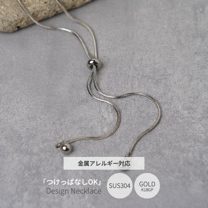 【ステンレス製】スネークチェーン タイネックレス スライドボール 金属アレルギー サイズ調整【a-n142】