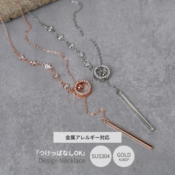【ステンレス製】チェーン Y字 ネックレス ピンクゴールド シルバー スライドボール サイズ調整【a-n140】