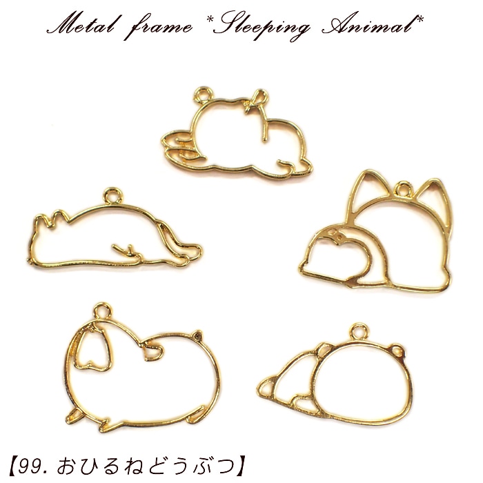 ※在庫限り※メタルフレーム【99.おひるねどうぶつ】【1個売り】うさぎ ねこ 猫 きつね パンダ カワウソ 犬 パグ ハムスター 動物 アニマル レジン枠 ピアス ネックレス キット DIY 国内発送