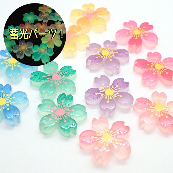 デコパーツ【75.フロスト桜パーツ(蓄光)】 10個売り 6色 桜 さくら アクリル パーツ 蓄光 光る ピンク グリーン イエロー パープル ハンドメイド DIY 推し色 推し活 カラフル 国内発送