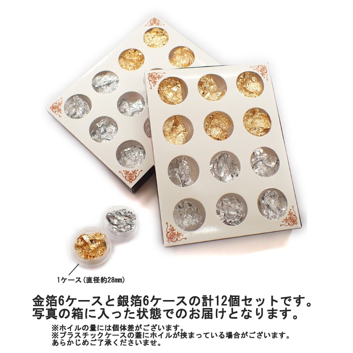 デコパーツ【19.金箔&銀箔セット】【12ケース】レジン ネイル デコ ボールペン ホイル ピアス ネックレス キット 手作り ハンドメイド 高品質 アクセサリー DIY 国内発送