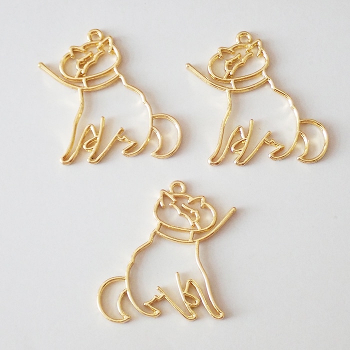 メタルフレーム【201. 拒否柴】【1個】レジンフレーム ゴールド 嫌がる犬 散歩 日本犬 柴犬 秋田犬 チャーム 動物 アニマル レジン枠 DIY 国内発送