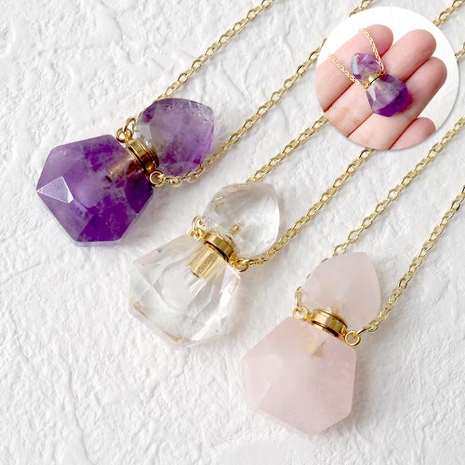 【天然石 Hタイプ 香水瓶 ネックレス】ラブラドライト アメジスト 水晶 ローズクォーツ アロマペンダント ボトル 高品質 香水 DIY 国内発送