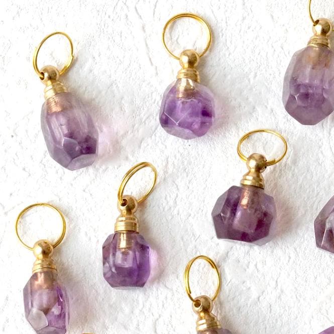 【天然石 Nタイプ 香水瓶 ネックレス メタルキャップオクタゴン】八角形 香水 アクセサリー アロマ ペンダント パワーストーン クォーツ アメジスト