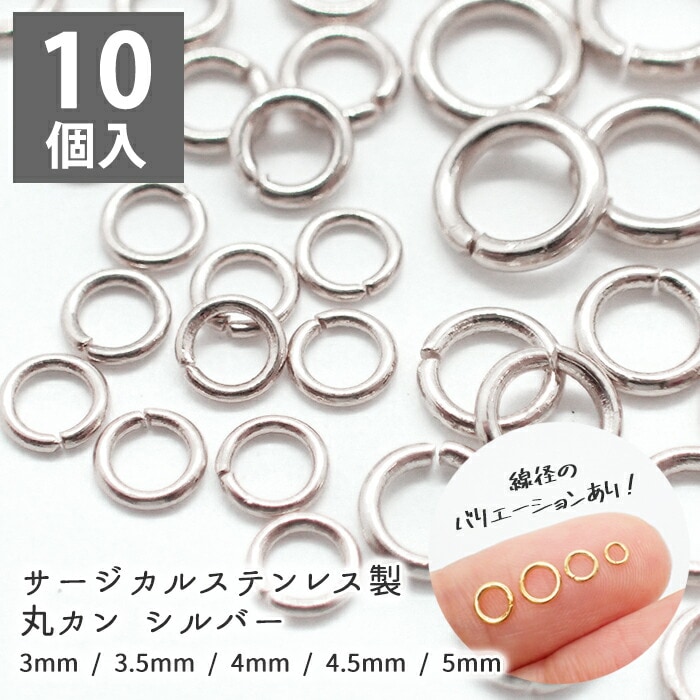 【31.ステンレス製 丸カンシルバー】【サイズ5種類】【10個売り】金属アレルギー対応 SUS304 基礎パーツ シルバー ゴールド 金 銀 手作り ハンドメイド DIY 国内発送