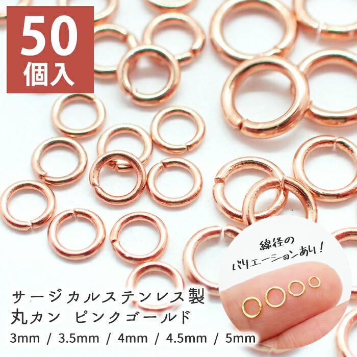 アレルギー対応 ステンレス 22.サージカルステンレス 丸カン ピンクゴールド【10個売り】【9種類】 マルカン アクセサリーパーツ アクセサリバーツ