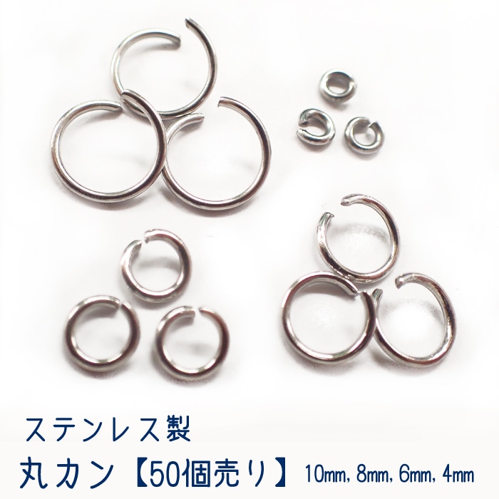 【31.ステンレス製 丸カンシルバー】【サイズ5種類】【50個売り】金属アレルギー対応 SUS304 基礎パーツ シルバー ゴールド 金 銀 手作り ハンドメイド DIY 国内発送