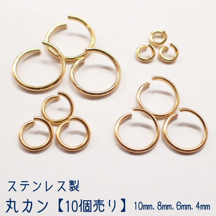 【30.ステンレス製 丸カンゴールド】【サイズ5種類】【10個売り】金属アレルギー対応 SUS304 基礎パーツ シルバー ゴールド 金 銀 手作り ハンドメイド DIY 国内発送