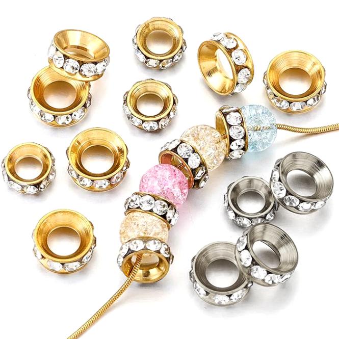 ステンレス製 カン付 メタルビーズ【5個】スぺ―サー メタルビーズ ロンデル 縦カン 横カン 切れ目なし ゴールド シルバー パーツ 金具 アクセサリー SUS304 金属アレルギー対応
