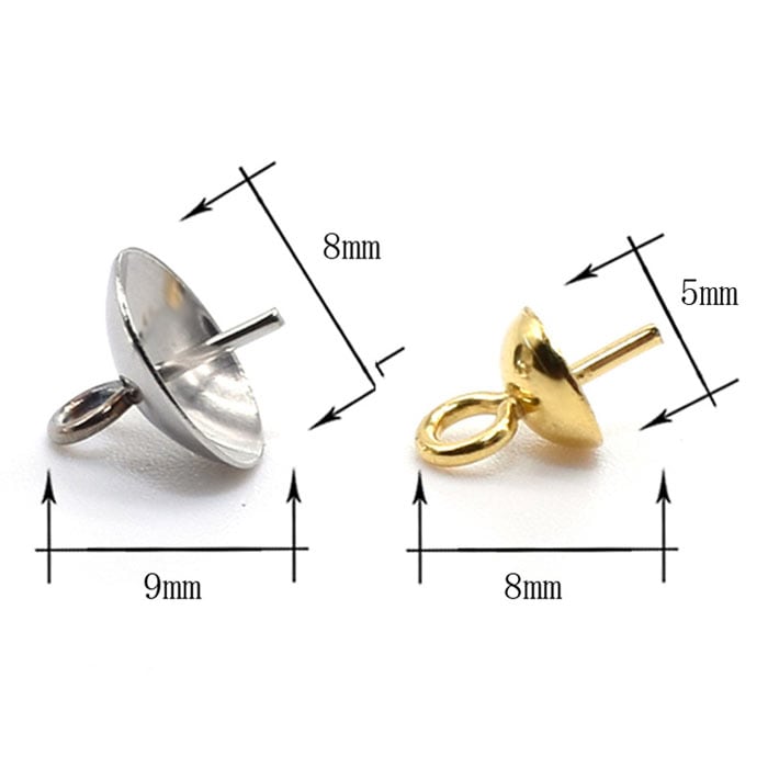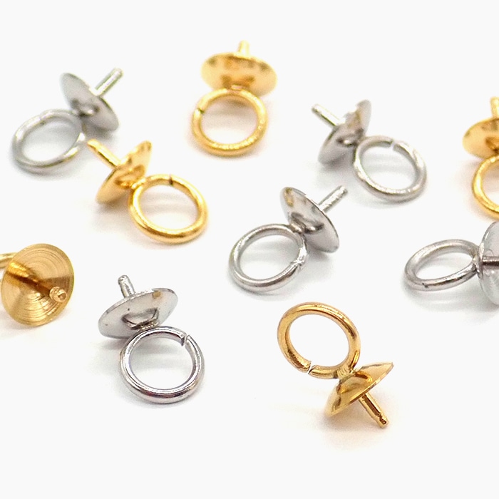 【ステンレス製】キャップ付きヒートン 芯立 カン付き 接着パーツ 片穴ビーズ用 ハンドメイドパーツ