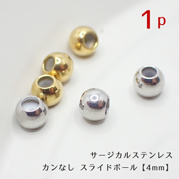 ステンレス製 カンなし スライドボール ビーズ 5個【8×4mm 】 留め具 金属アレルギー対応