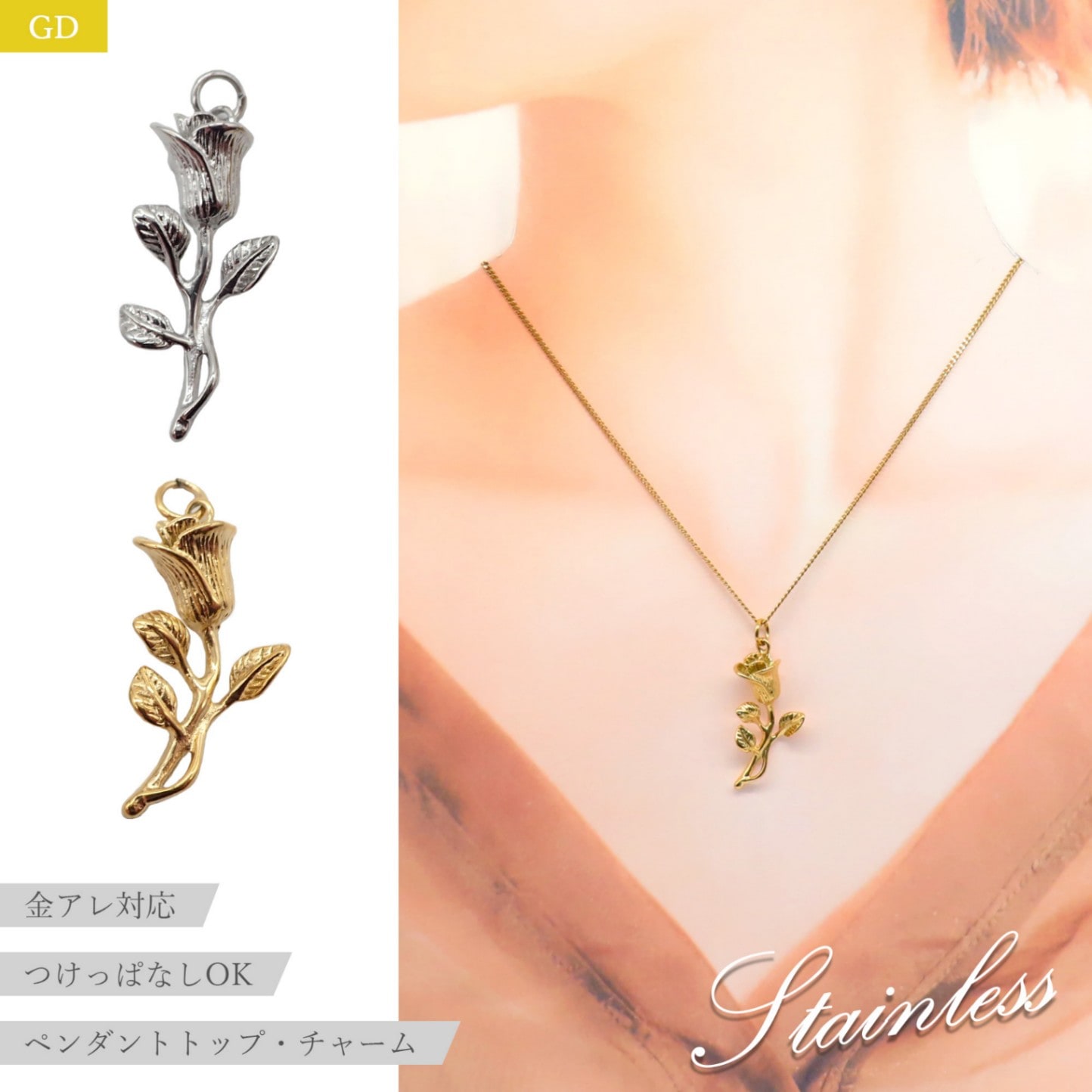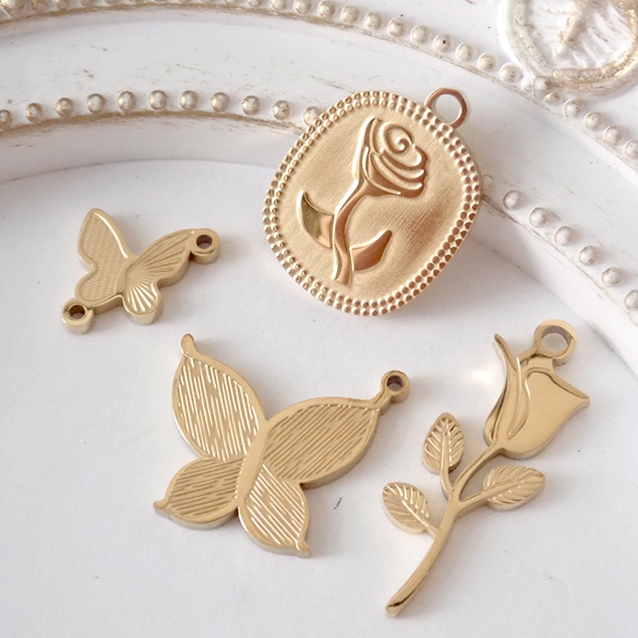 金属アレルギー対応【28.蝶とローズガーデン】ステンレスチャーム 2個 メタルチャーム 薔薇 バタフライ 花 ハンドメイド パーツ 材料