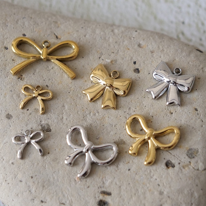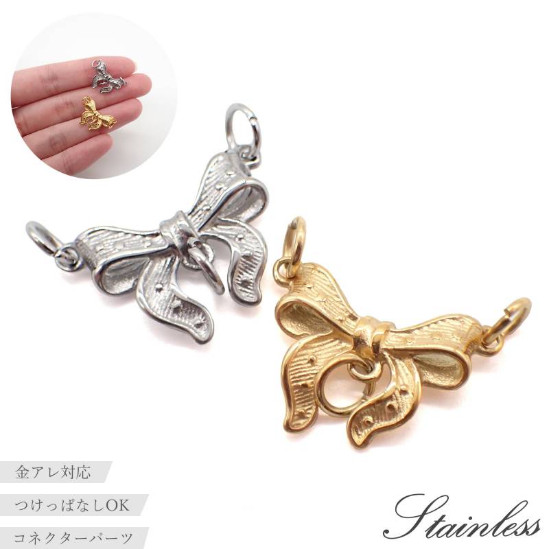 金属アレルギー対応【29.リボン】ステンレスチャーム 1個 メタルチャーム リボン 細い 細め 小さめ ハンドメイド パーツ 材料