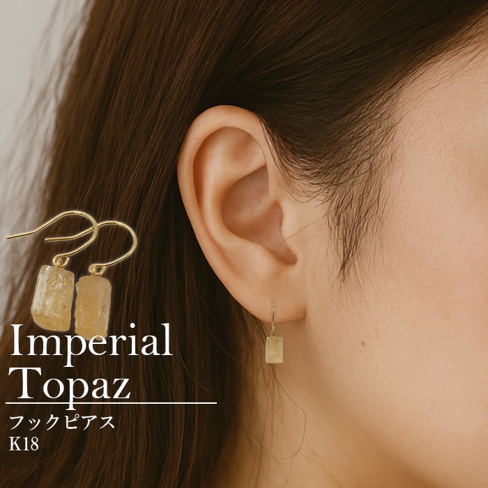インペリアルトパーズ原石 フックピアス 【ブラジル産/日本製/k18】【PC】